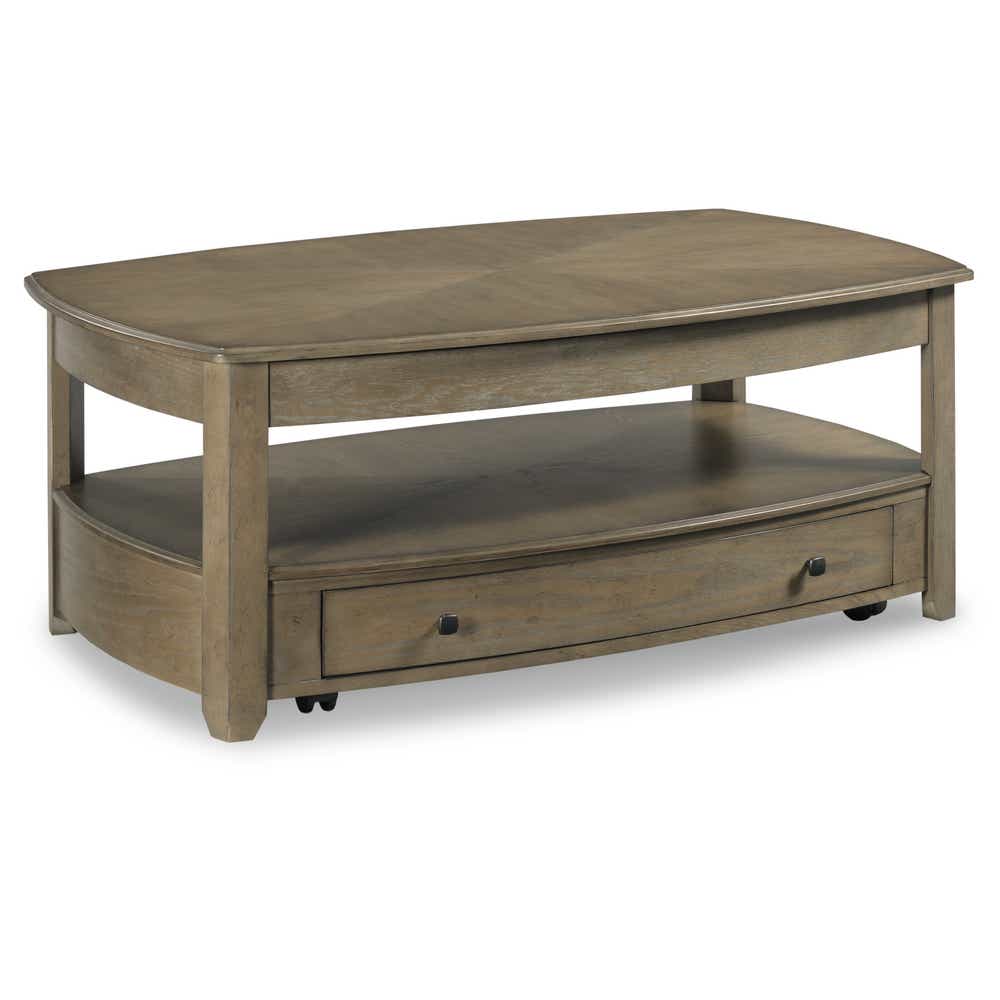 The Rectangular Lift-Top Coffee Table from the Primo III collection blends transitional and casual styling with practical functionality. Crafted from white oak in a rich Hazel finish, it showcases a distinctive reverse diamond pattern on the top, adding a dynamic visual element. The lift-top feature provides versatility for work or dining, while two bottom drawers offer concealed storage for essentials. An open shelf enhances accessibility, making this thoughtfully designed piece a stylish and adaptable centerpiece for any living space.